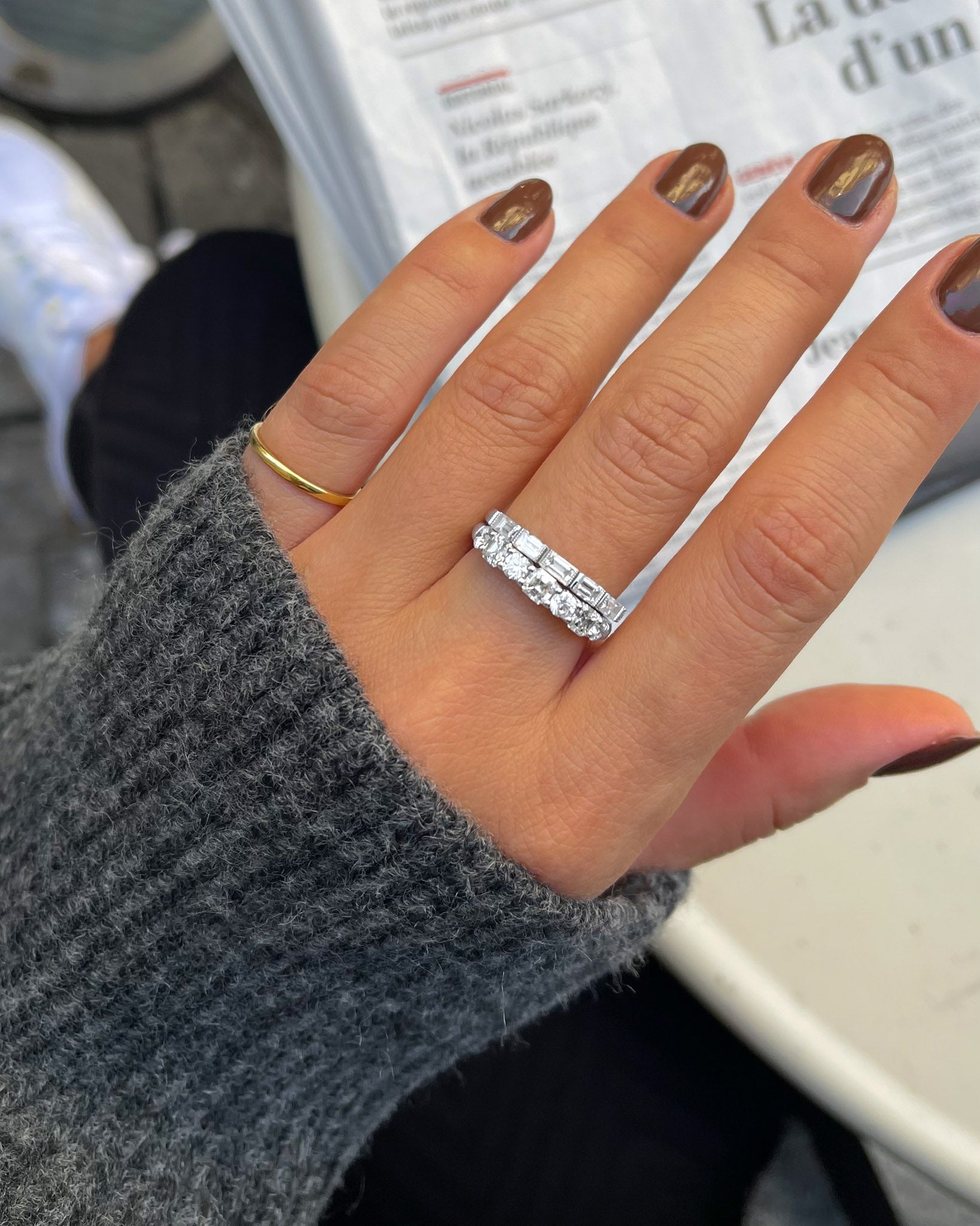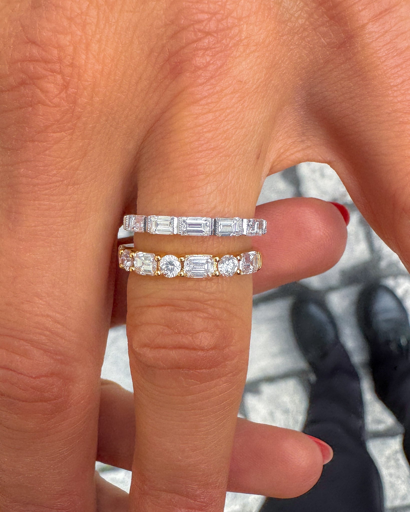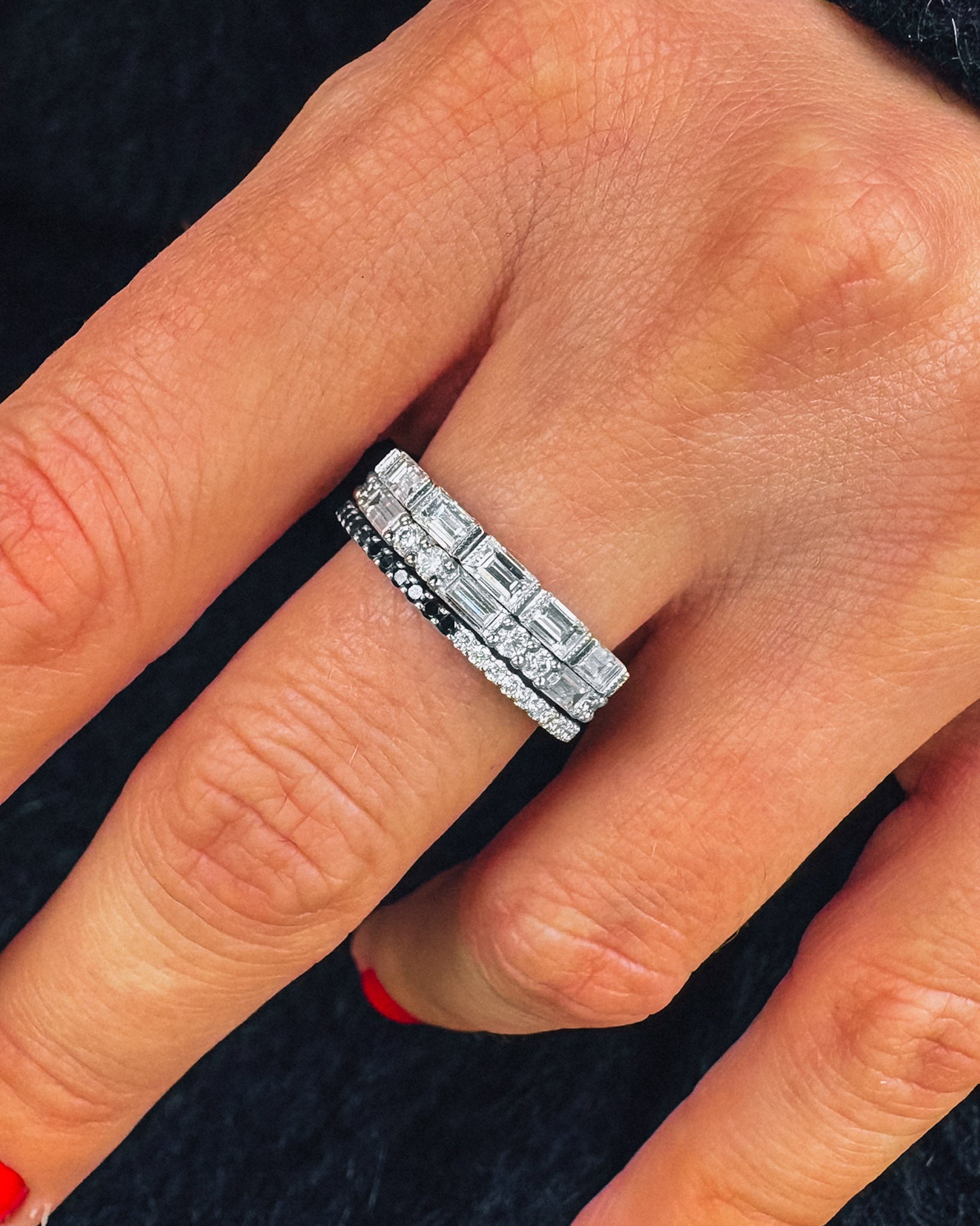 The Bahamas ring is set with 5 baguette cut diamonds of the finest quality. The total carat weight of a standard size is approximately 0.63 carats. Color grade G, clarity grade VS1.
