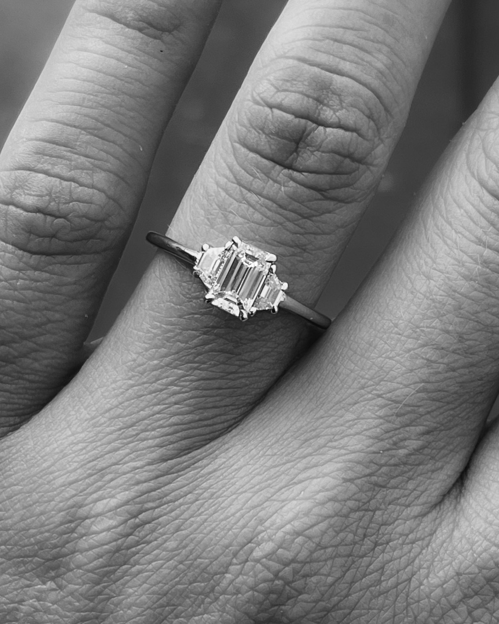 Emerald cut diamonds have a unique look created by the step cuts of its pavilion and its large, open table.