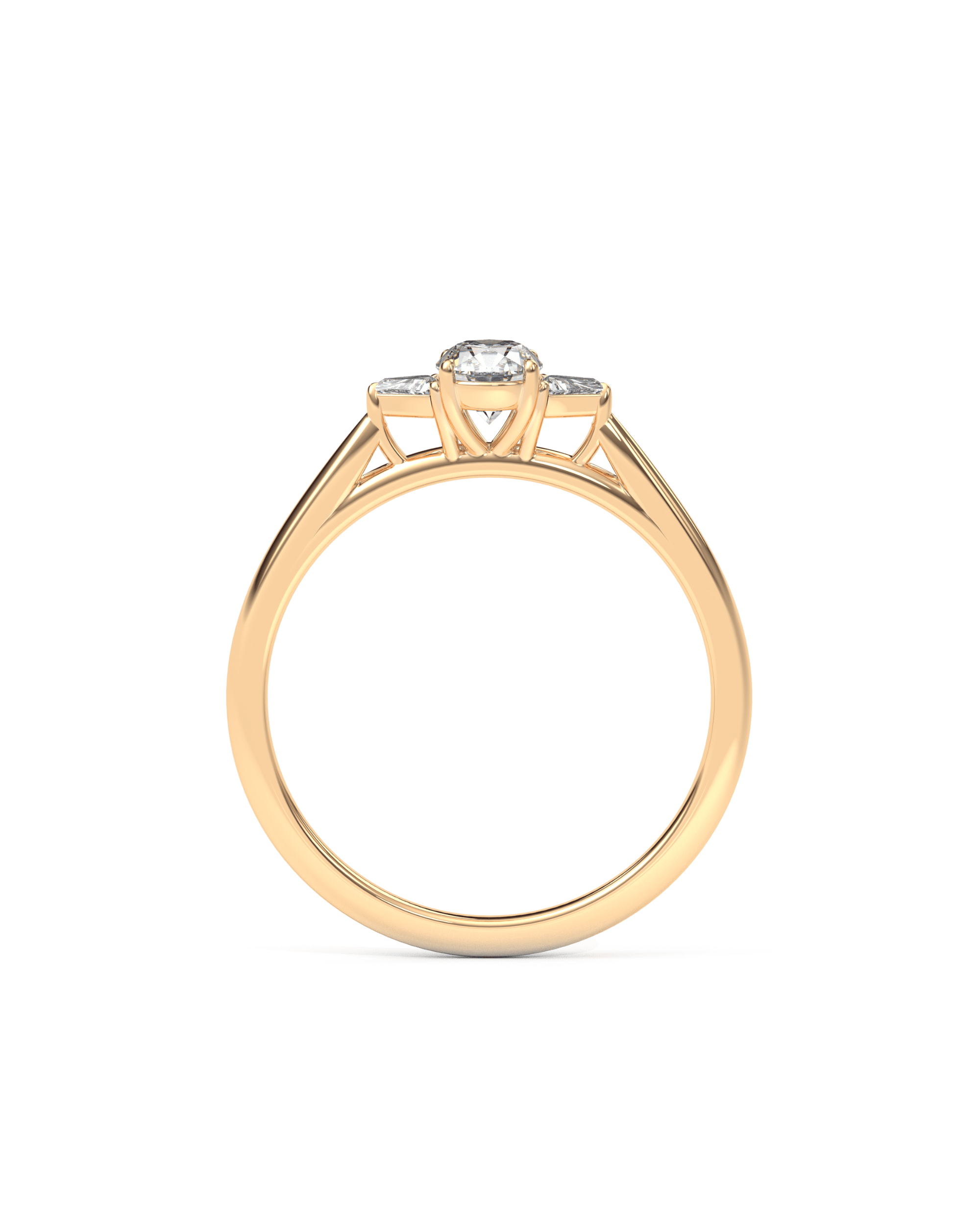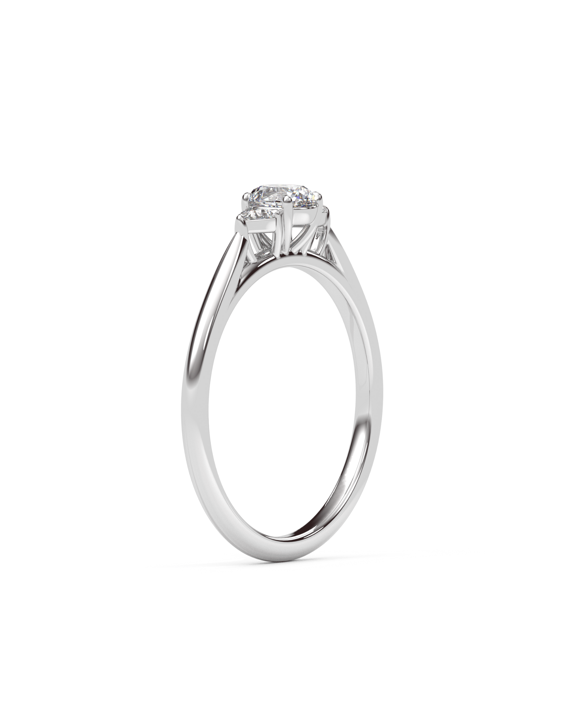 Diamonds set under the center stone for subtle sparkle visible from the side.