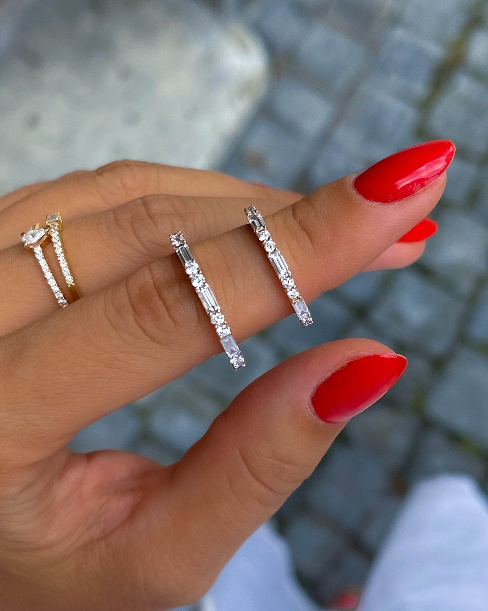 Baguette cut diamonds offer understated sophistication with their sleek, rectangular shape and step-cut faceting. They add refinement to any jewellery piece.