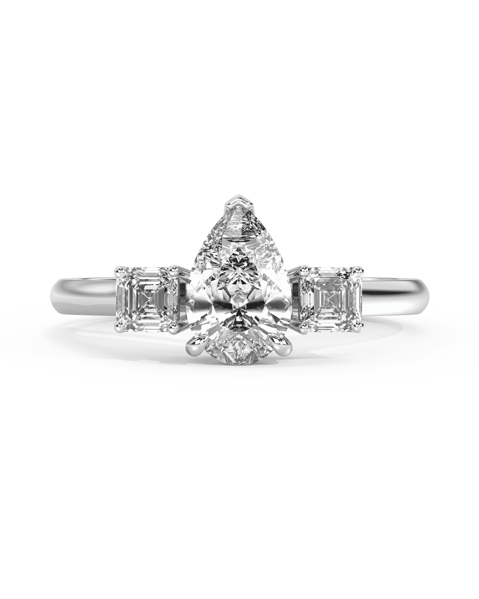 Flanked by smaller pears, rounds, or half-moons for balanced elegance.