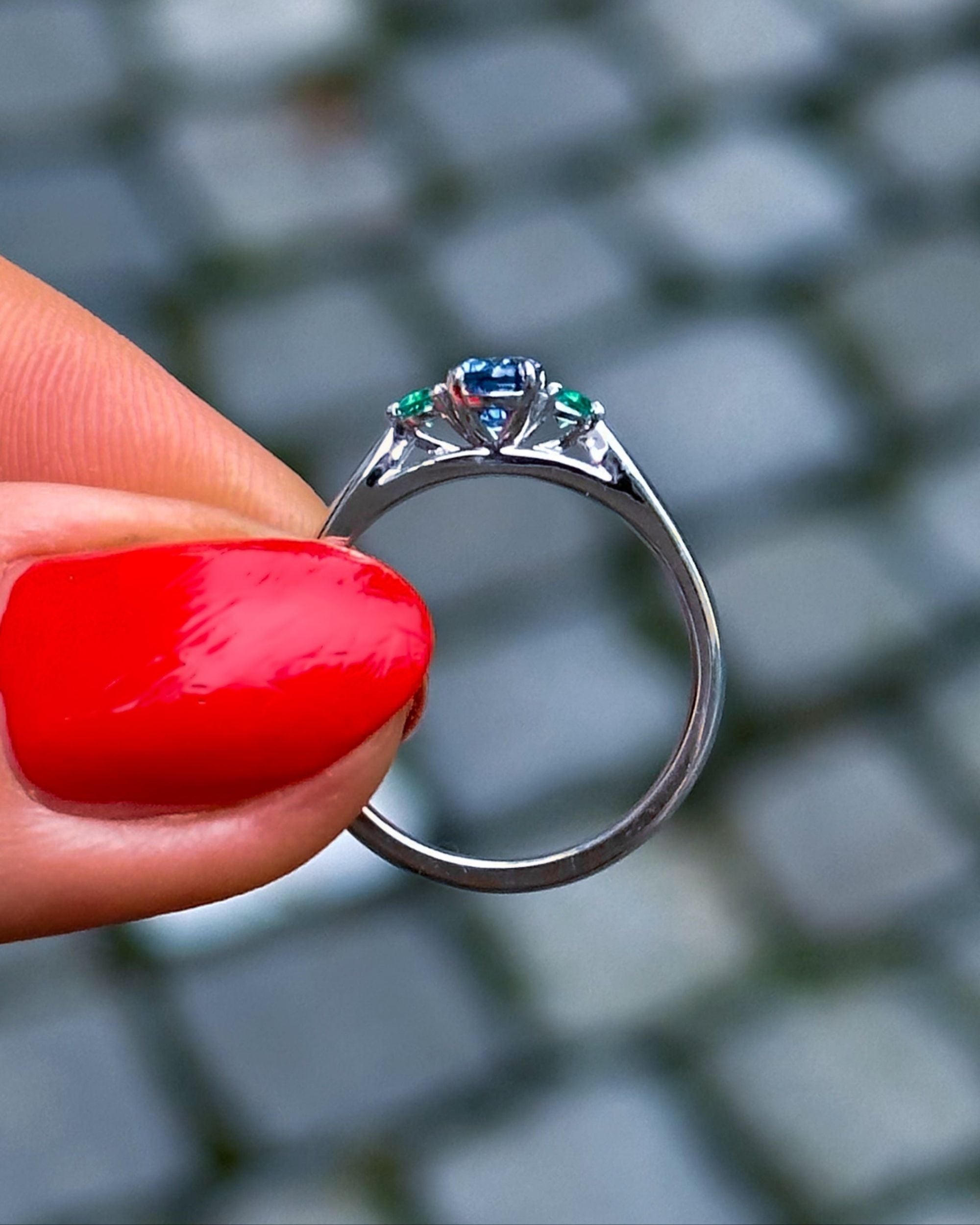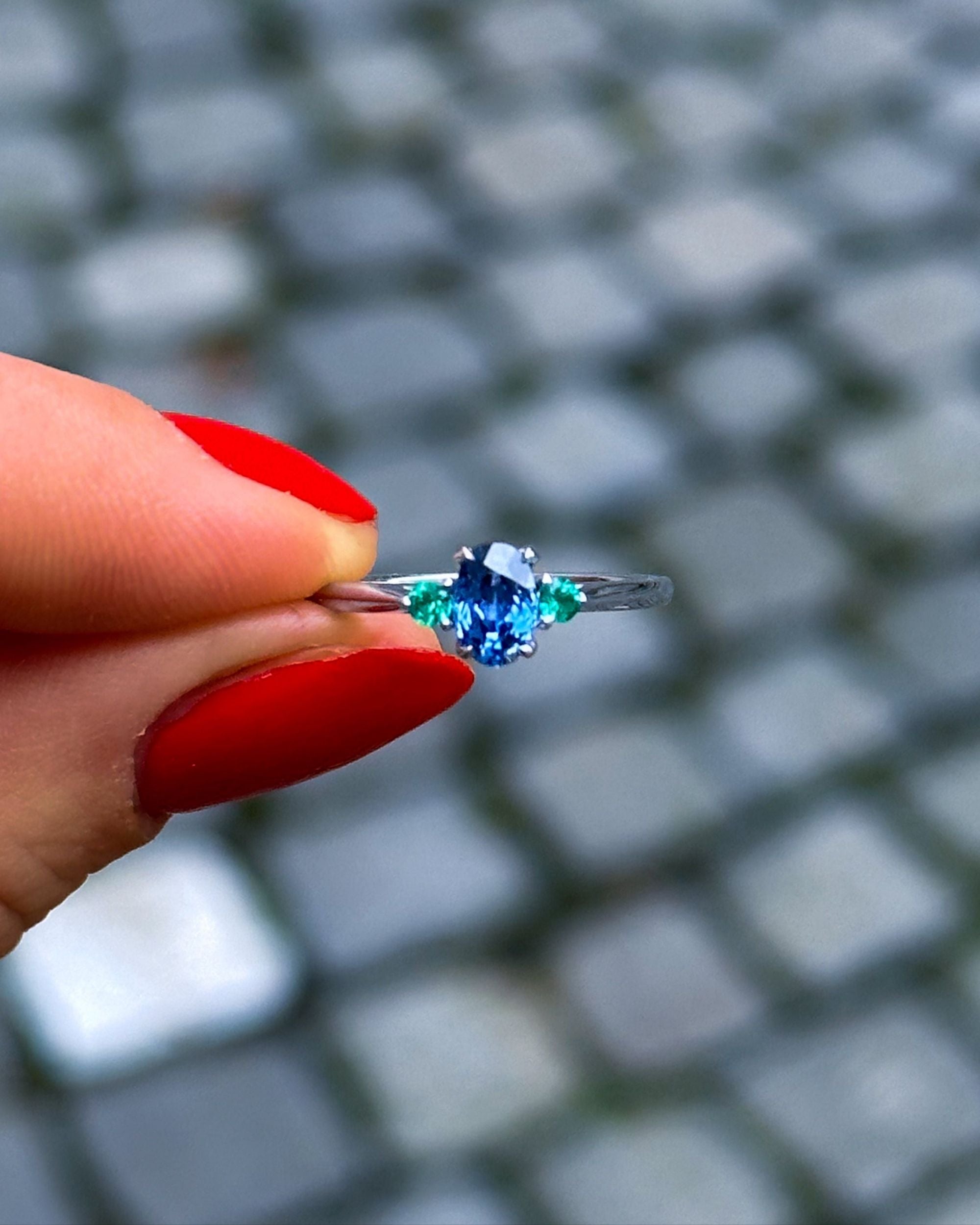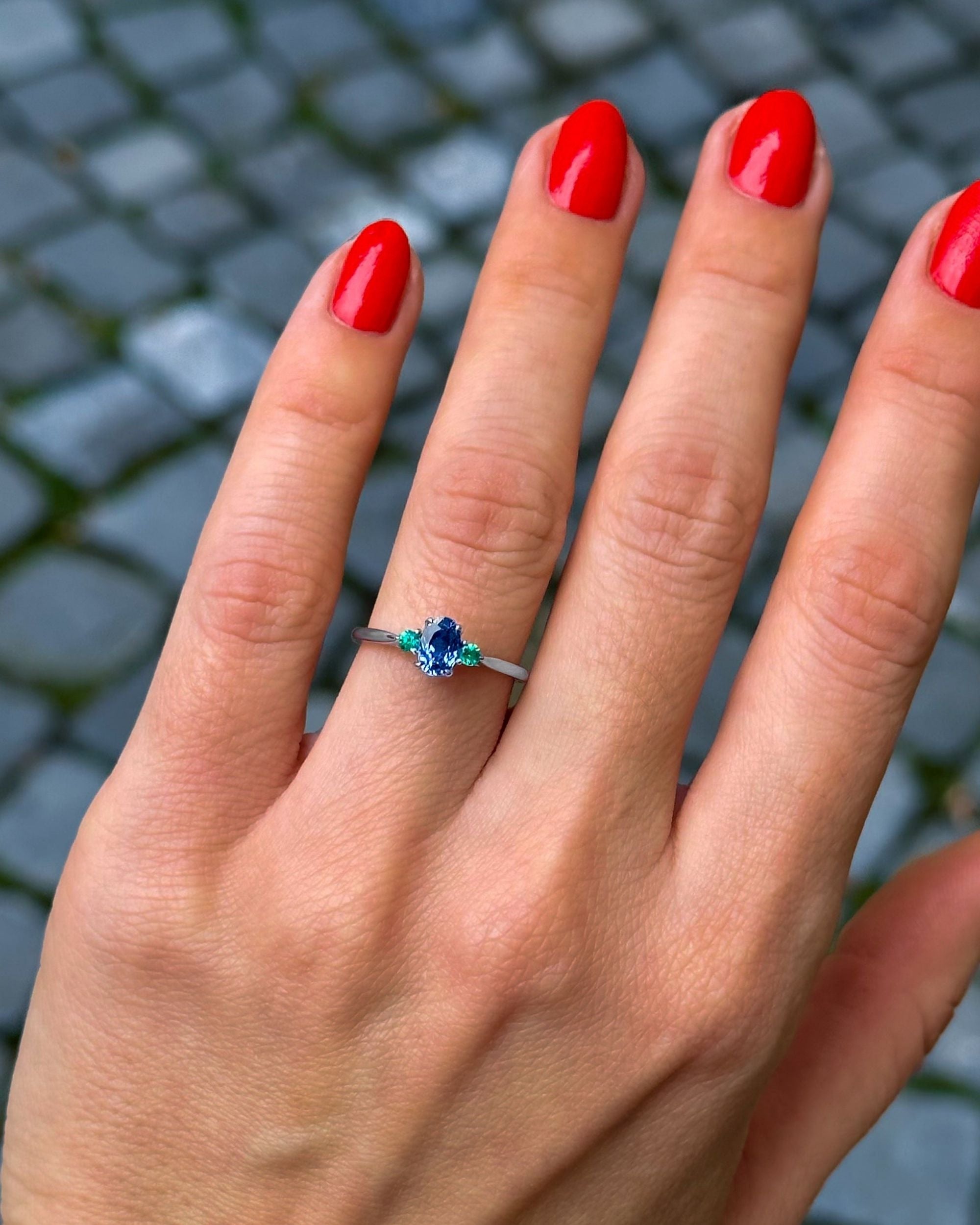 Oval Sapphire & Emerald Engagement Ring