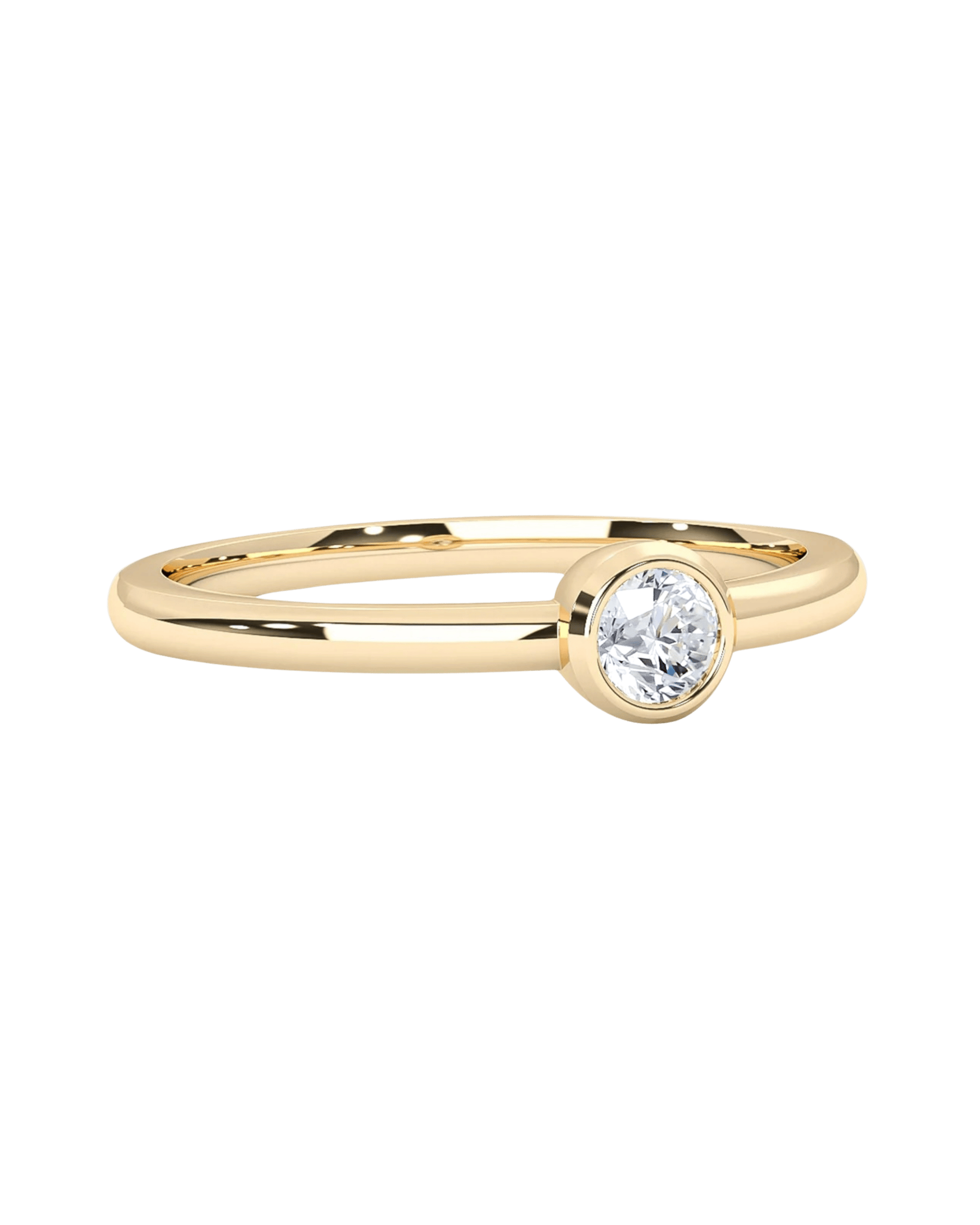 Modern setting with metal rim surrounding the diamond. Sleek and protective.