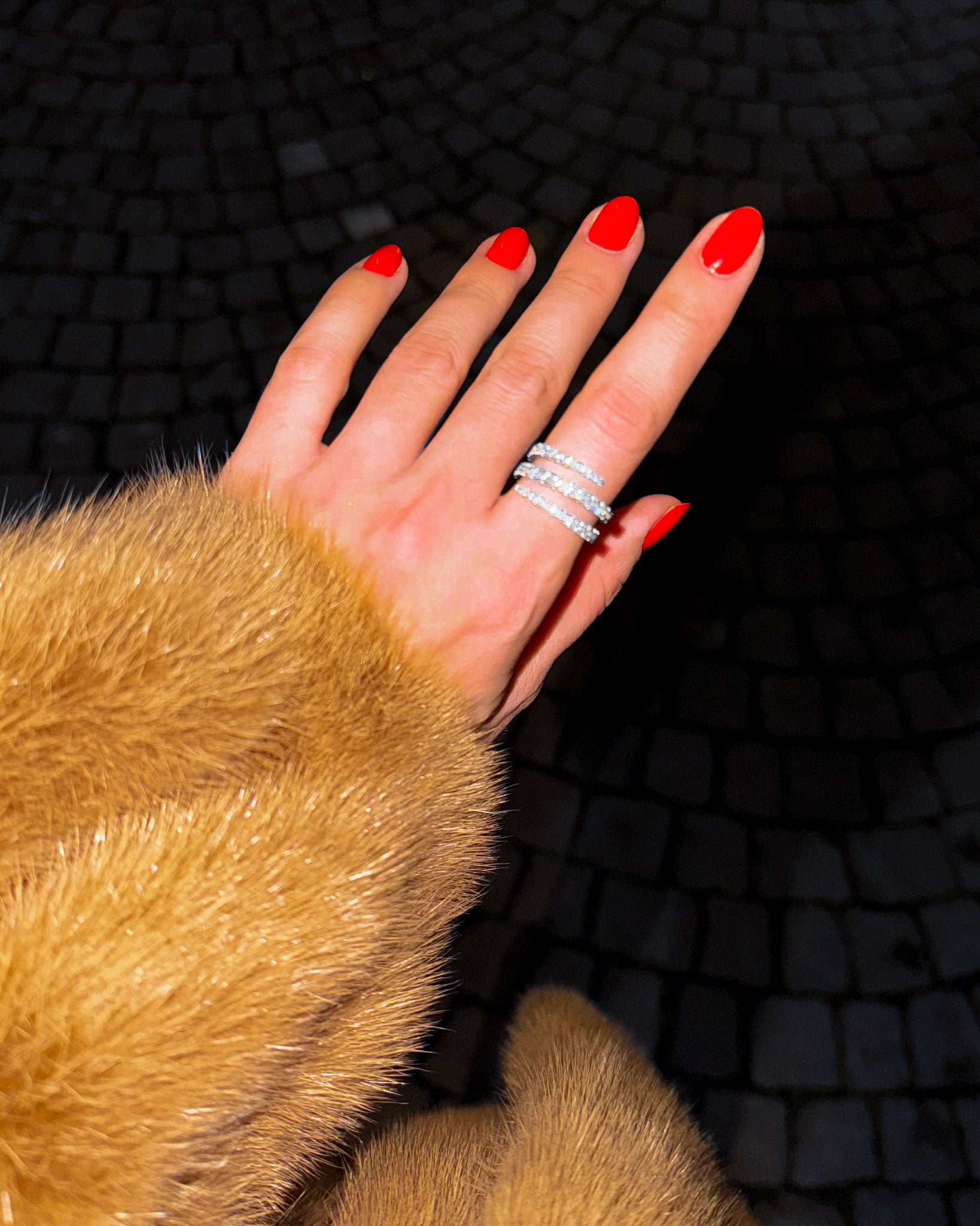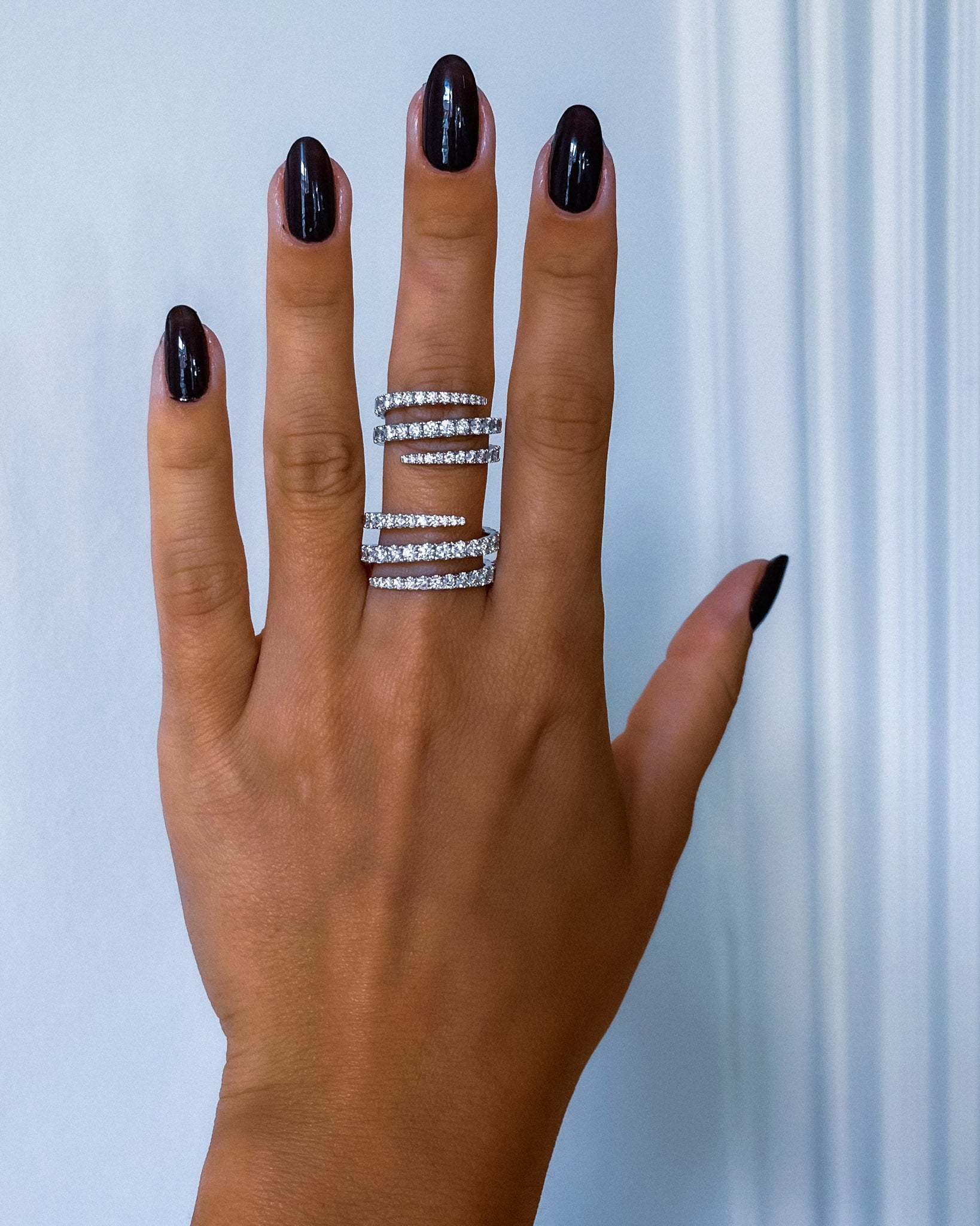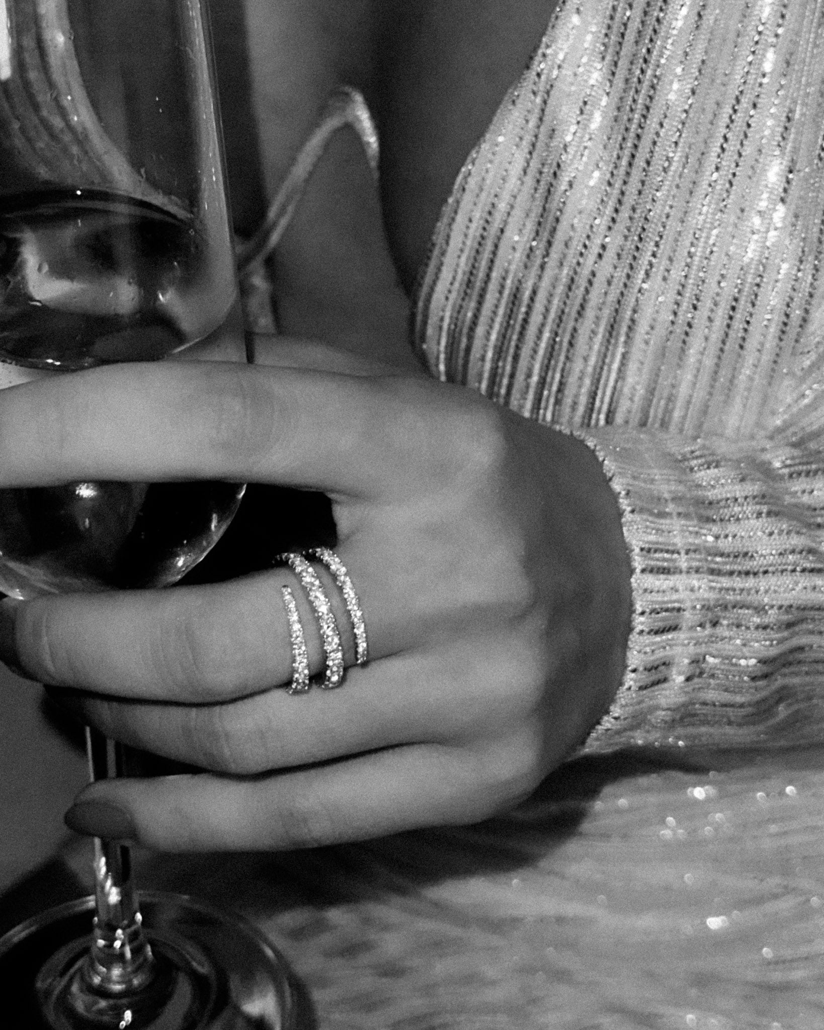 The Teahupoo ring is set with 53 diamonds of the finest quality. The total carat weight of a standard size is approximately 3.10 carats. Color grade G, clarity grade VVS1, triple Excellent Cut.