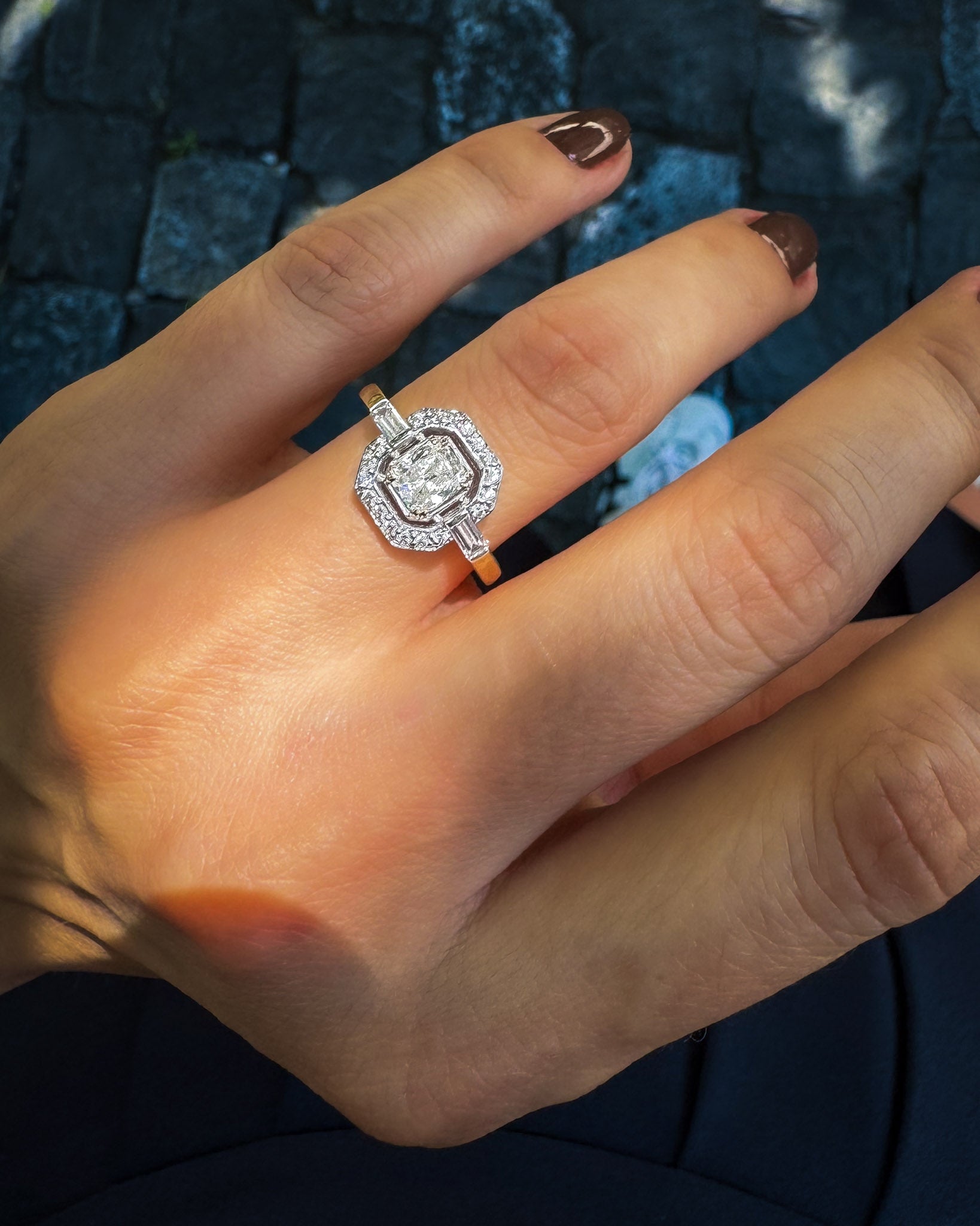 Cushion cut diamonds offer a timeless elegance with their square or rectangular shape and rounded corners. Known for their brilliance and romantic appeal, these diamonds combine vintage charm with modern sparkle, making them a popular choice for engagement rings and classic jewellery pieces.